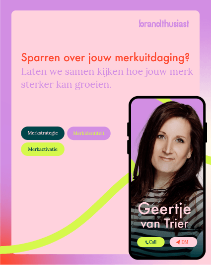Vertel me waar je merk staat en waar je naartoe wilt. Dan denk ik met je mee over hoe we jouw merk kunnen laten groeien en stralen.